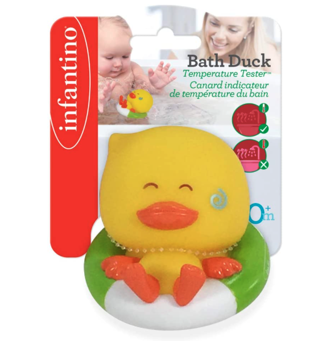 Đặt chú vịt Infantino vào trong chậu tắm của bé và kiểm tra nhiệt độ. Vịt sẽ báo nóng khi nhiệt độ nước vượt mức 98.6° F (37° C).