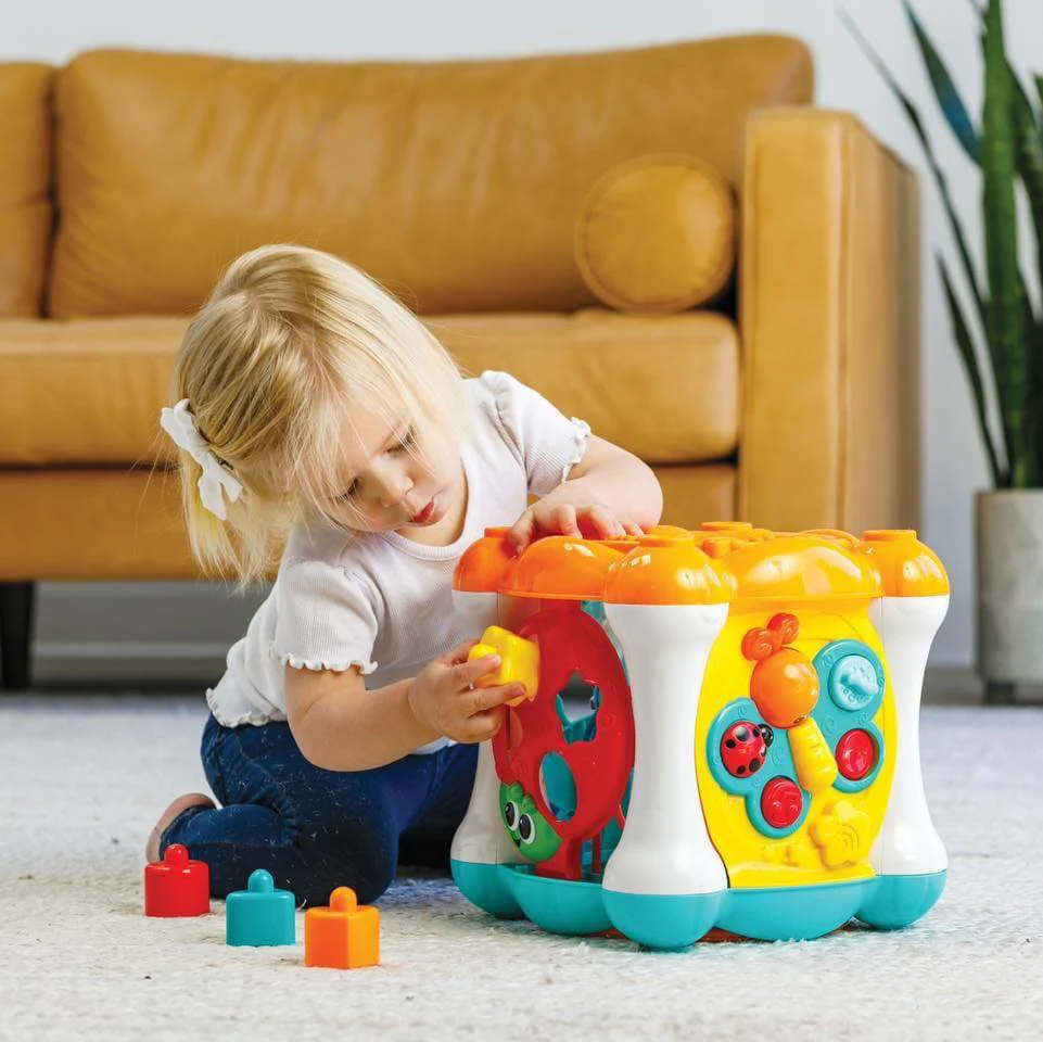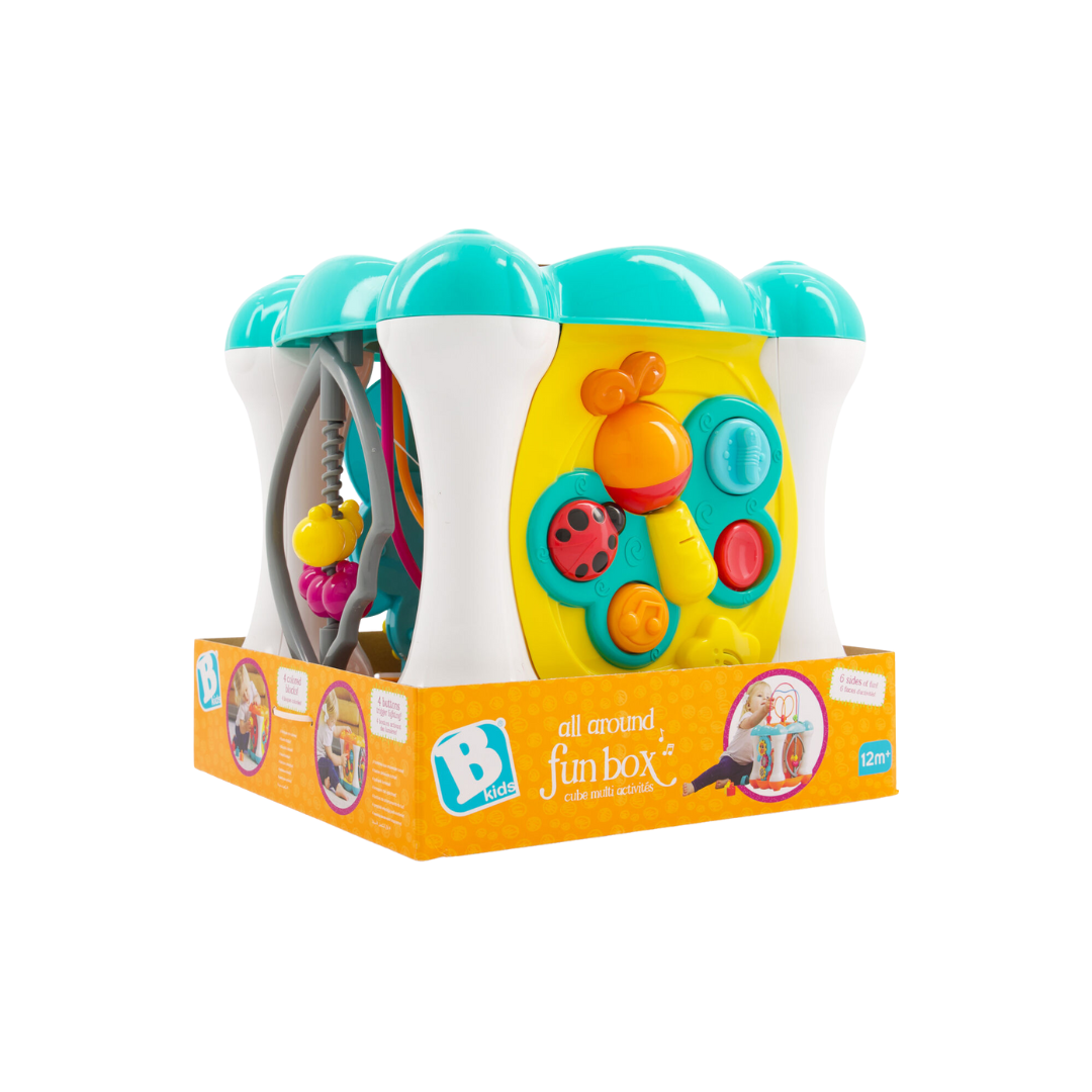 Hộp đồ chơi khám phá All Around Fun Box lý tưởng cho bé trai và bé gái. Bộ kỹ năng giúp trẻ nhận dạng màu sắc và hình dạng, phối hợp tay và mắt, nhận dạng nhịp điệu và hình dạng.